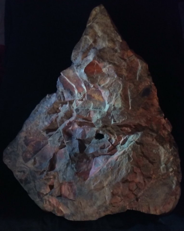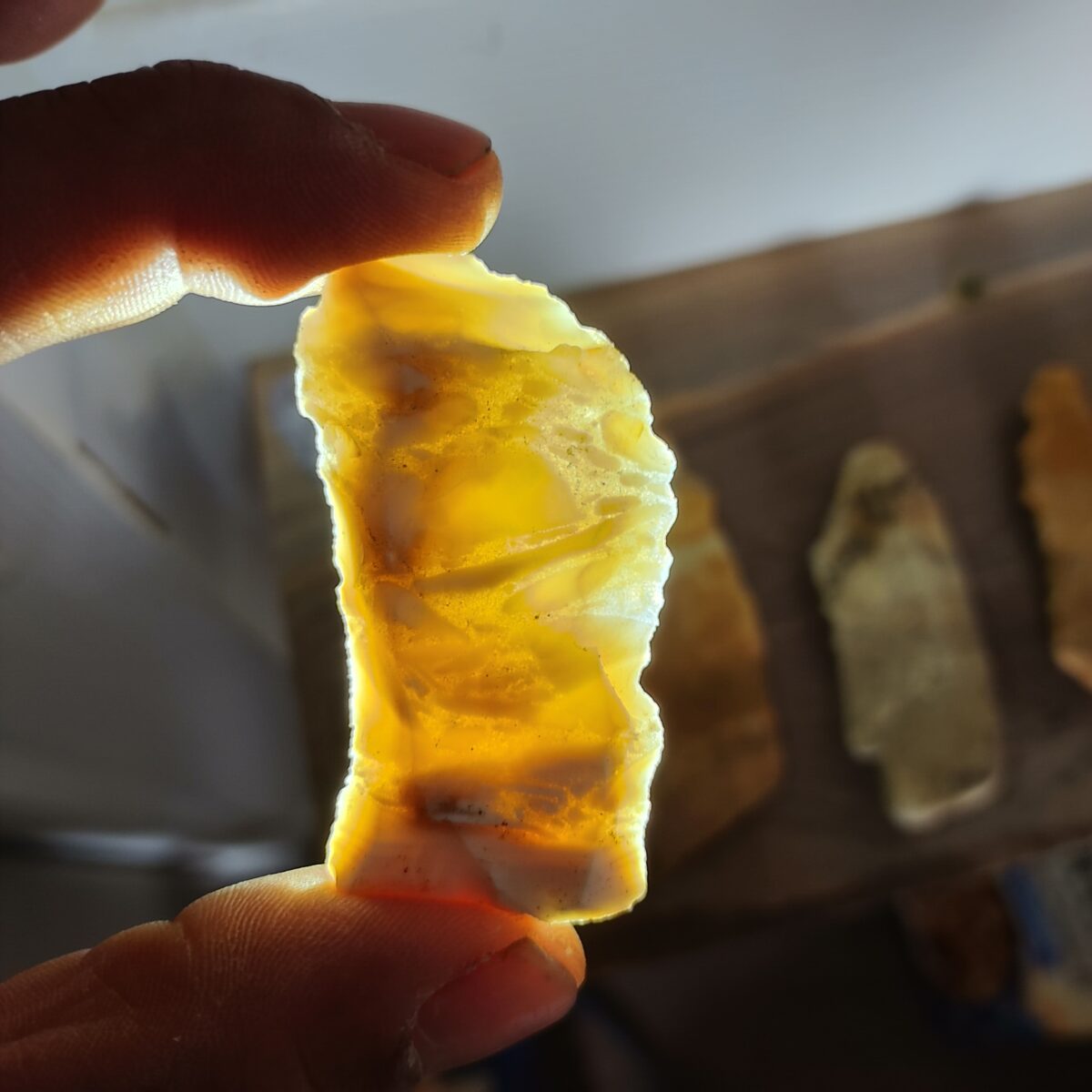 IndianRock.art translucent skull knife (illuminated) – random surface stone(rss), ultra-rare, translucent, knapped, flawless, medium grade, composition not identified
